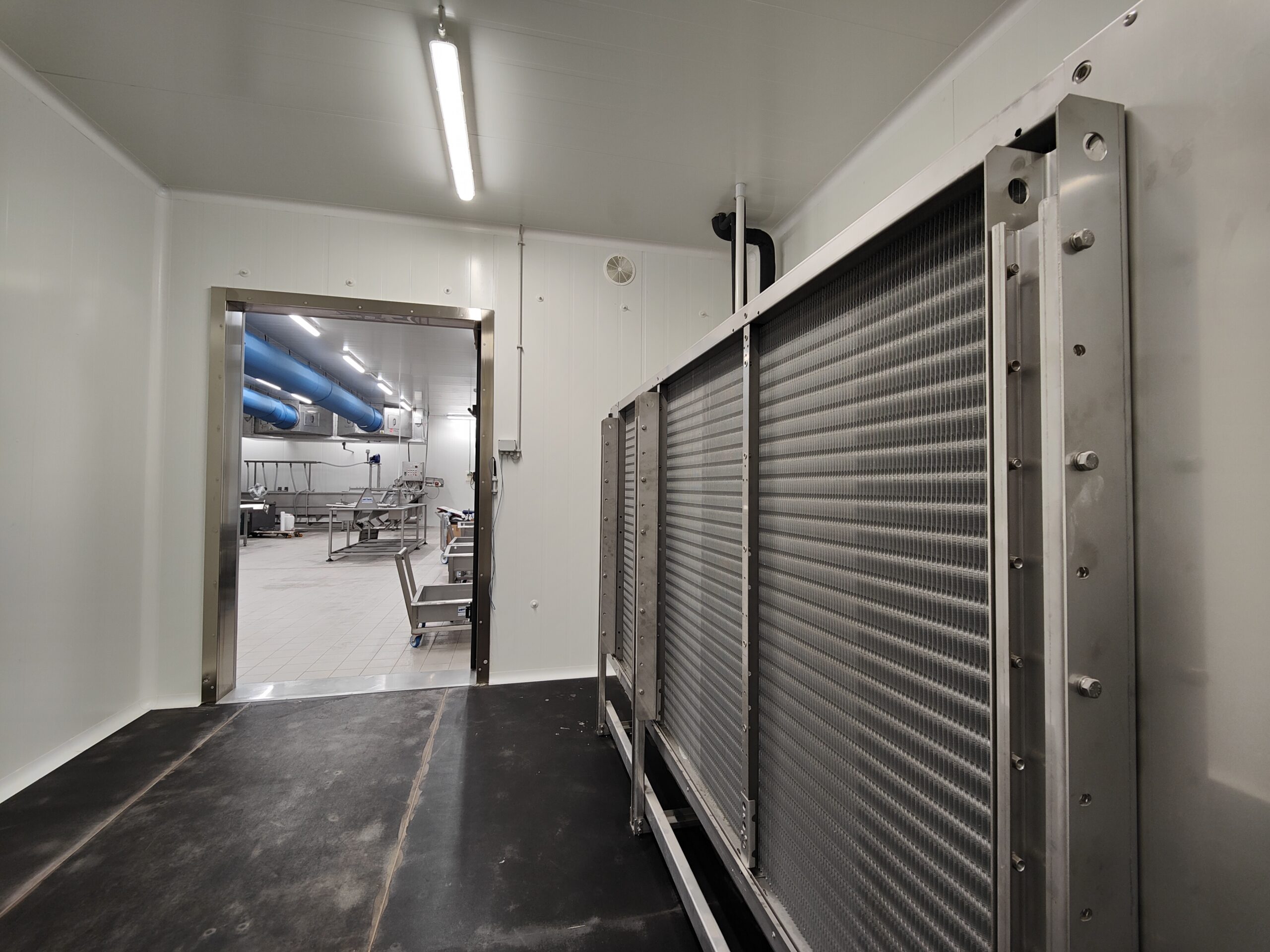 Blast chilling tunnels, thanks to a powerful refrigeration system with -40°C air, allow products to reach a core temperature of -18°C in the shortest possible time, thus keeping the organoleptic qualities of the food intact. Thus, a blast chilling plant serves to “bring down” the core temperature of a product in a given time. This type of plant measures the temperature of that product and carries out a cycle in which to bring the core of the product in a given time to a given temperature.